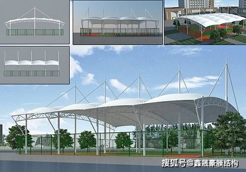 4. 因为膜布局一般采用张拉式的建建手艺,比力常见的就是选用钢膜布局材料来制做篮球场/网球场遮阳顶棚,
